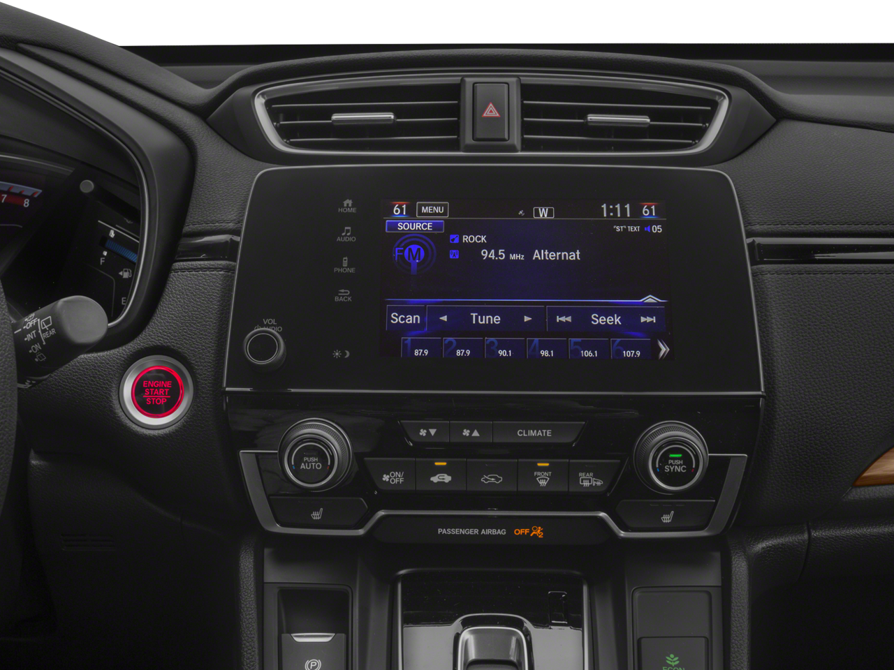 - Radio: AM/FM Audio System w/6 Speakers -inc: 180-Watts, 7" display w/high-resolution WVGA (800x480) electrostatic touch-screen, customizable feature settings, Bluetooth streaming audio and HandsFreeLink, Pandora compatibility, Radio Data System (RDS), Speed-Sensitive Volume Control (SVC), USB audio interface w/1.0-amp port in center console, USB smartphone/audio interface w/1.5-amp port in center console, 12-volt power outlets (front and center console), HondaLink, Apple CarPlay/Android Auto, SiriusXM, SMS text message function and 2.5-Amp charging ports in 2nd-row