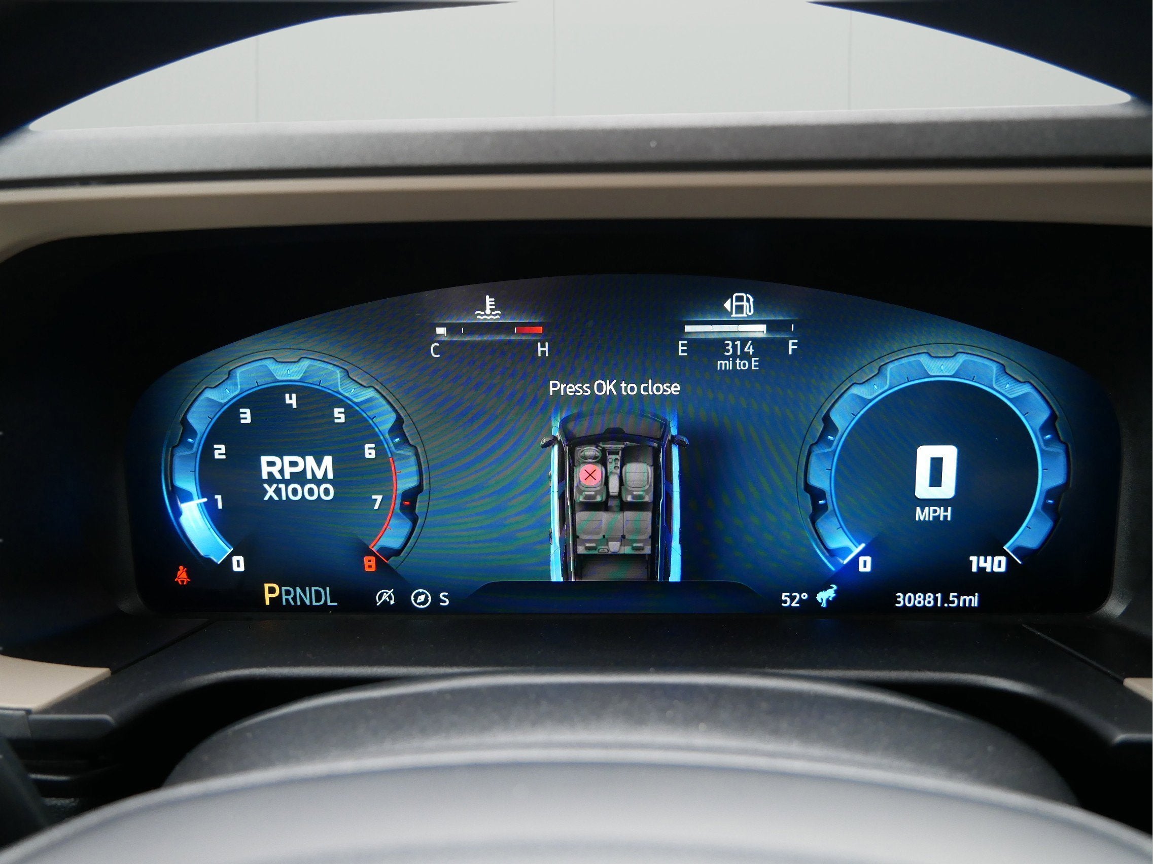- Gauge cluster display size (inches): Gauge cluster display size: 12.30