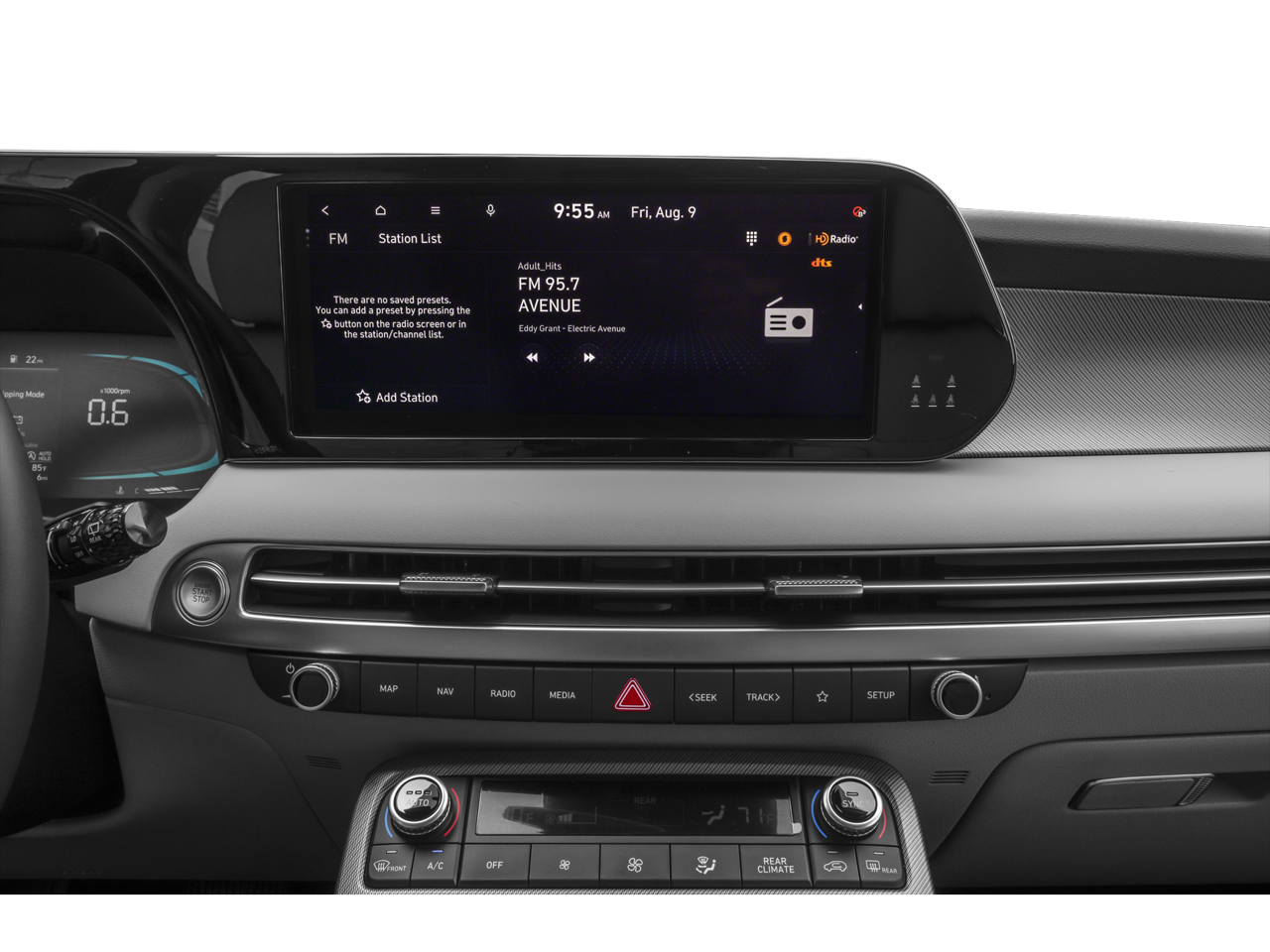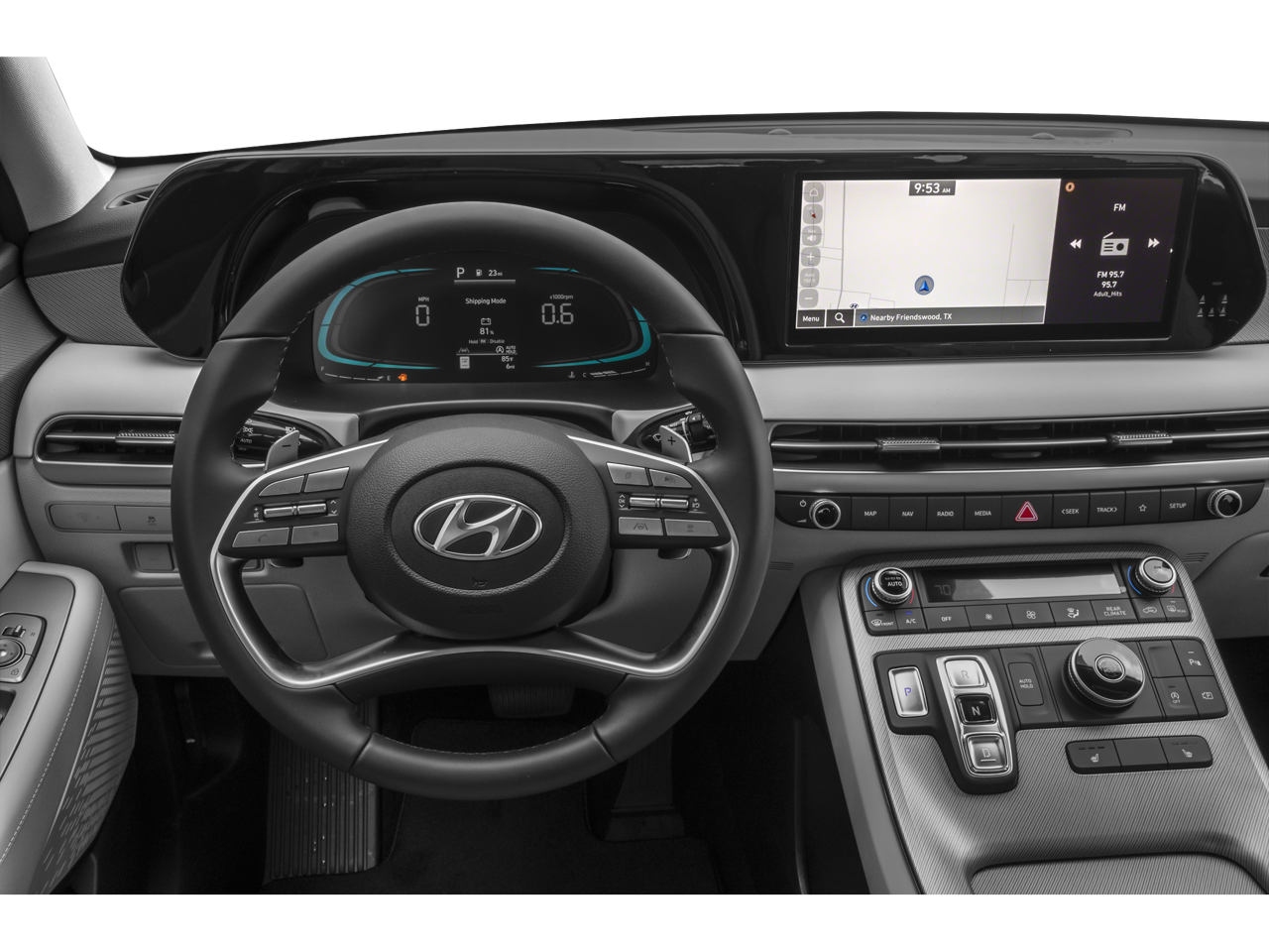 - Radio: AM/FM/MP3 Audio System -inc: 12.3" color touchscreen display, onboard navigation w/traffic flow including incident data via HD Radio (HERE), Over-the-Air (OTA) map updates, SiriusXM, USB, Android Auto and Apple CarPlay, rear seat quiet mode, Bluetooth hands-free connectivity w/multiple device connection and wireless audio streaming, Wifi hotspot, dynamic voice recognition and Bluelink Connected Car System